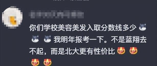" 你们学校美容美发录取分数线多少,我明年报考一下。不是蓝翔去不起,而是北大更有性价比。"