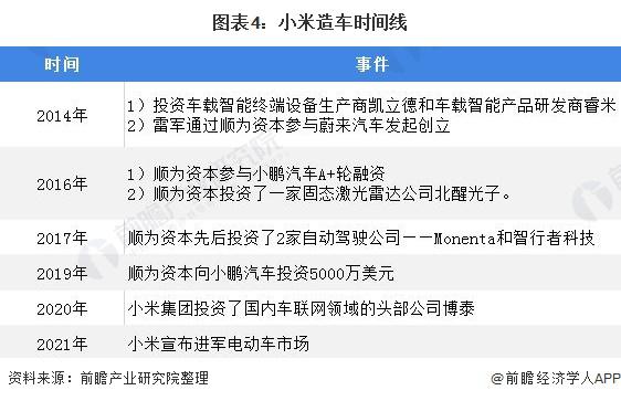 2021 年 3 月 30 日,小米集团发布公告,宣布拟成立一家公司全资子公司,负责智能电动汽车业务。首期投资为 100 亿元人民币,预计未来 10 年投资额 100 亿美元。
