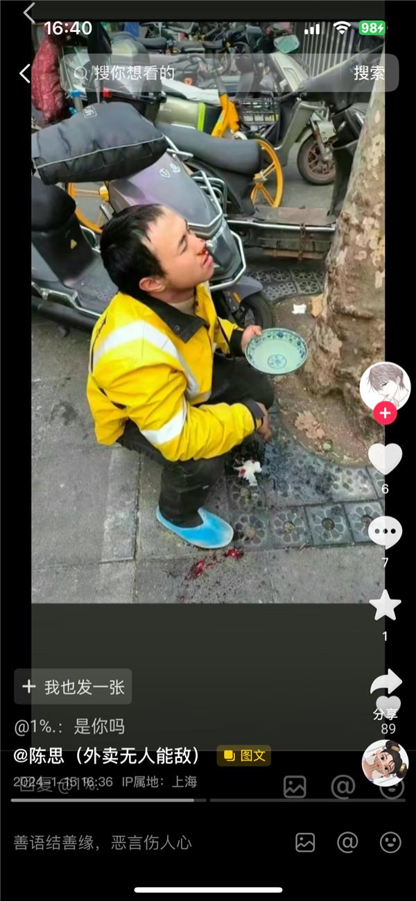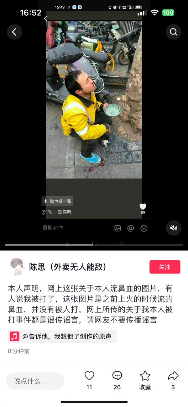 3年赚102万外卖小哥陈思辟谣被人打:鼻子流血是上火