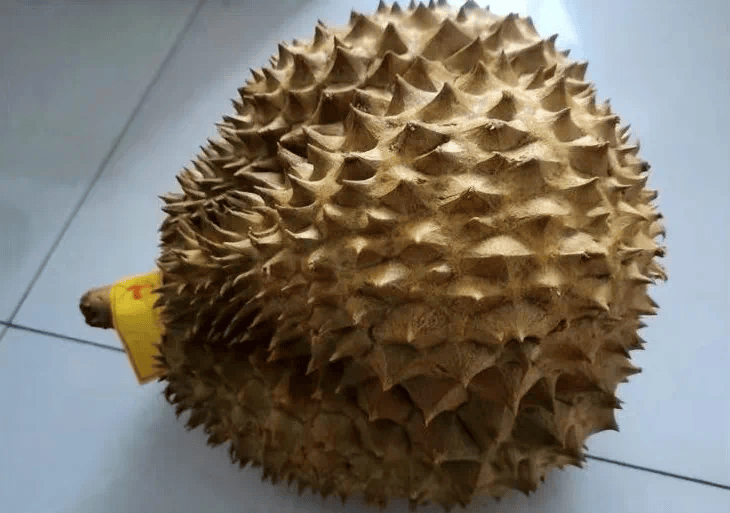 成熟的榴莲果实的尖刺相对松软,相邻的尖刺能够轻松靠近。如果尖刺比较坚硬,说明果实较生。
