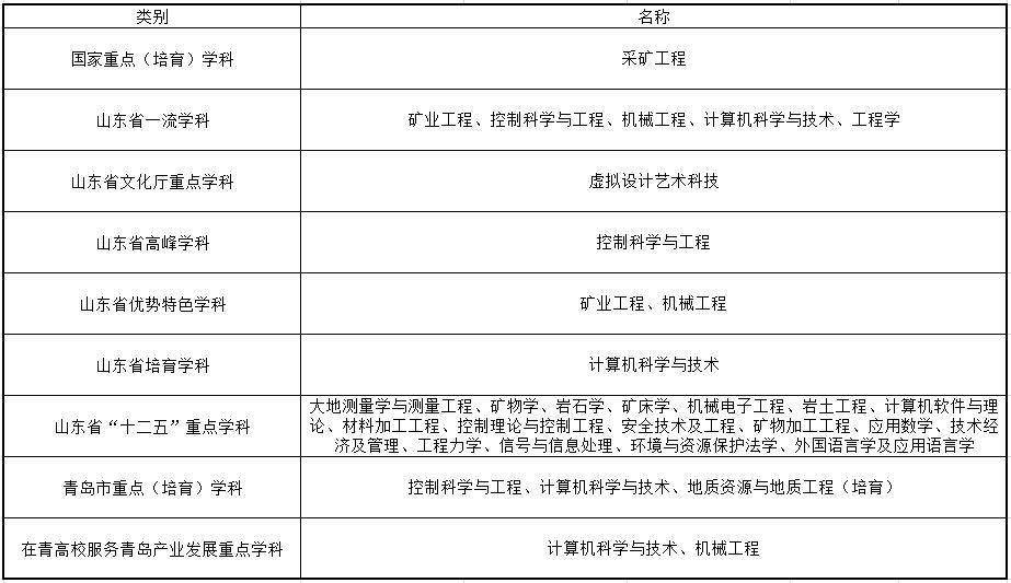 在学科建设方面,根据2022年7月学校官网信息显示,学校有博士后科研流动站9个,博士学位授权一级学科10个,硕士学位授权一级学科31个,硕士专业学位类别19个;有国家重点(培育)学科1个,山东省高水平学科4个,山东省一流学科5个,另有省市级重点学科19个,工程学、数学、化学、材料科学、地球科学、计算机科学、环境与生态学7个学科进入ESI全球排名前1%。