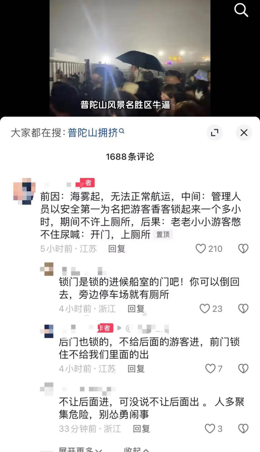 普陀山大雾停航致游客滞留“挤到不能呼吸”?最新回应