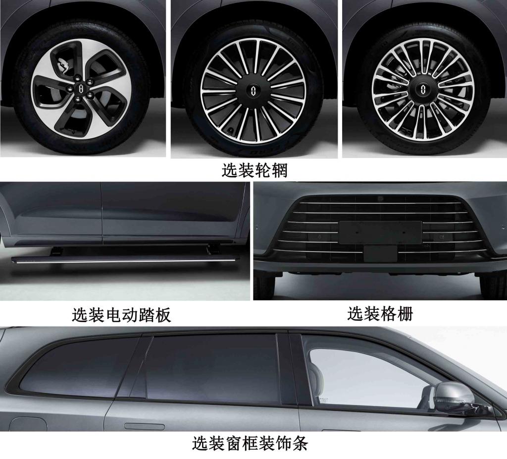 新车可选装的其他部件还包括行李架、多款轮辋、窗框深色饰条、电动踏板,以及激光雷达等。