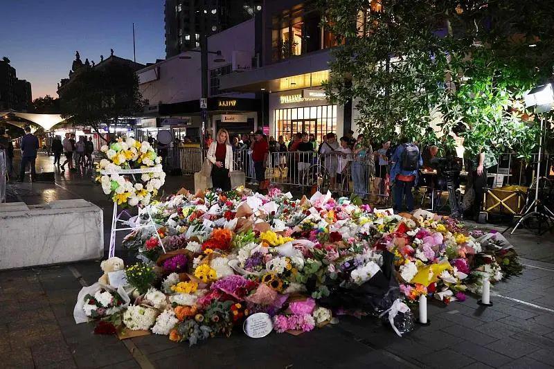 袭击发生后,澳大利亚举国悼念遇难者,数百民众在事发商场附近摆上花束。