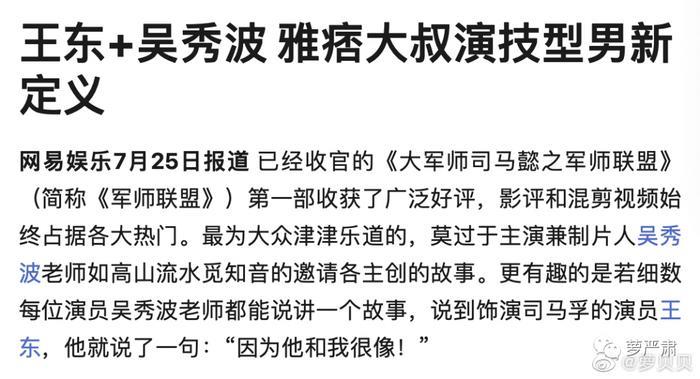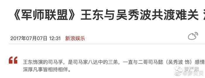 我是因为《克拉恋人》这个猛烈追求高雯的沈总记住了王东。过了几年吴秀波拍《军师联盟》,专门找王东演司马昭的弟弟司马孚,理由是他和自己长得像。