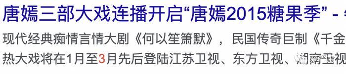2015年是唐嫣的爆发之年,剧版《何以笙箫默》热度非常高。2015年上半年唐嫣在湖南卫视“三剧连播”,堪称霸屏。