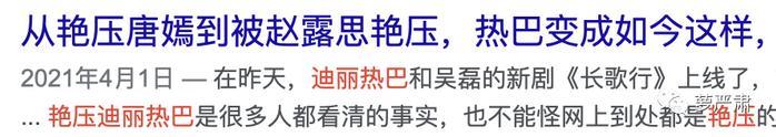 播完了,迪丽热巴咖位升上去了,进入了嘉行流量花逃不过的流程——“黑红”。唐嫣粉开麦的声音终于被听见了,又说当初是迪丽热巴宣发炒作“艳压”。再等到迪丽热巴自己当女一被女二艳压的时候,算“孽力回馈”。