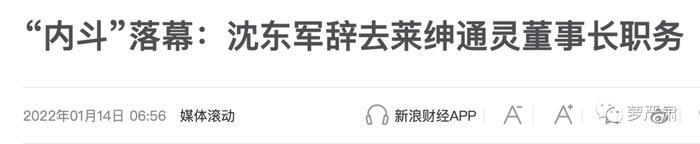 赘婿沈总是一方、发妻加上大舅哥是一方,双方一通争斗,今年沈东军辞去莱绅通灵董事长职务。