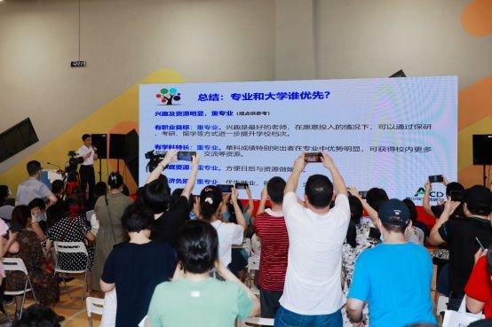 有了分数预估、也有了心仪校目标,接下来当然少不了的就是一份科学的志愿填报清单了。本次高招会一口气安排了5场志愿填报公益讲座,有着多年高考志愿填报指导经验的资深专家以及高中生涯规划师围绕“高考志愿填报规则”“志愿填报与职业规划”“高考多元升学路径解析”“手把手教你选大学专业”等多个主题讲座,提供志愿填报科普和技巧建议,“一站式”为考生家长排忧解难。