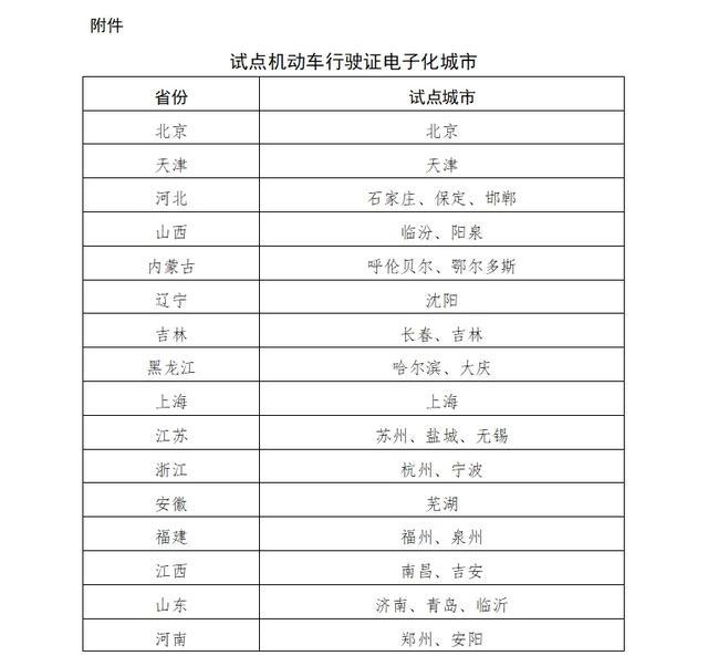 为确保应用效果,这 60 个试点城市发放的电子行驶证在全国范围内有效。
