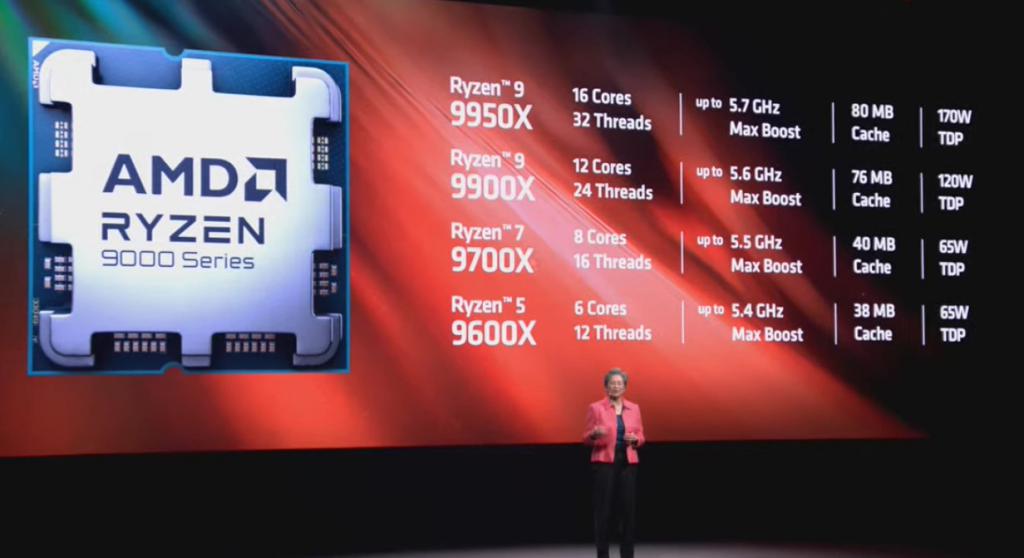 锐龙 9000 系列是继锐龙 7000"Raphael" 和锐龙 8000"Hawk Point" 系列之后,AM5 插槽的第三个系列;将配备多达两个 Zen5 小芯片,每个小芯片最多有 8 个核心,最高 16 个内核和 32 线程,与锐龙 7000 系列类似。AMD 还继续支持 SMT(同时多线程),Zen5 号称拥有 16% 的 IPC 提升。