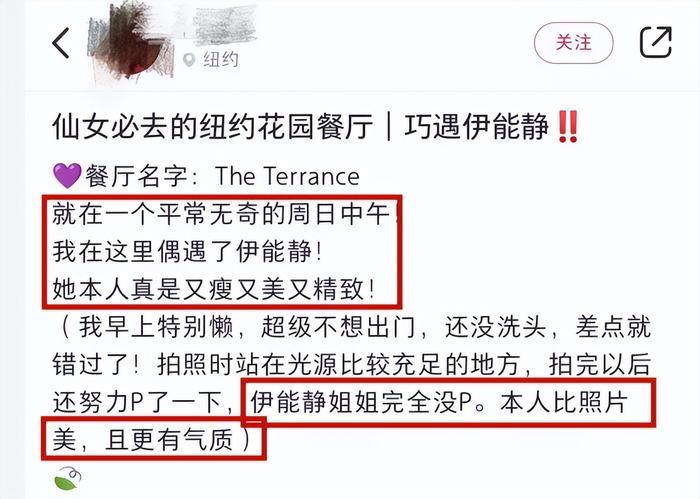这边伊能静才到纽约,有网友就在当地餐厅偶遇到了她。