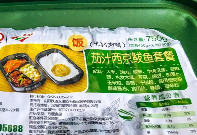 这是隶属东北某铁路局的车次,目的地也是开往东北某地,车厢里坐满了刚从景区旅游回程的东北大妈。中午就餐时间,车厢里不断广播订餐消息,称制作餐饮的这家企业曾为中国亚运会指定供餐机构,制作精良可口。