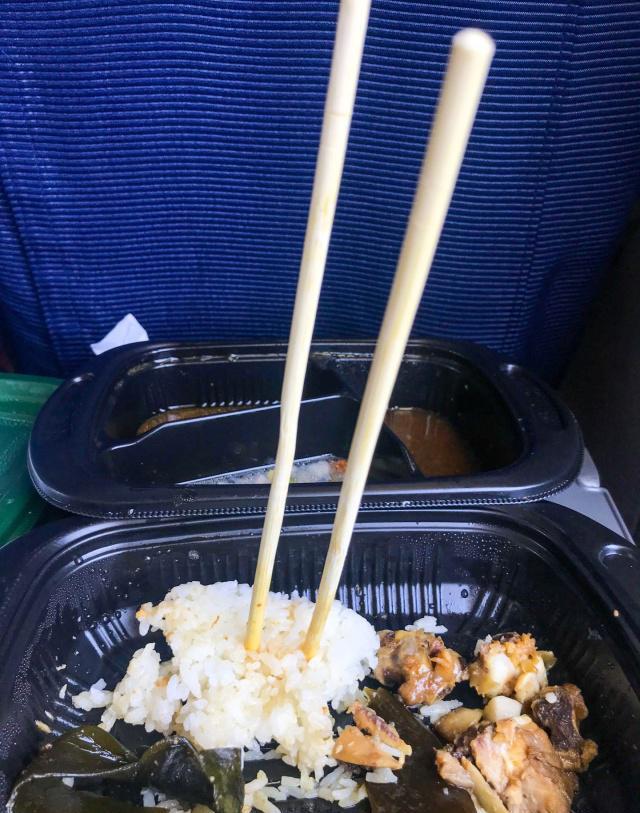 硬着头皮吃下这55的盒饭,后面几位东北大妈们急了,说中国高铁技术世界第一,为啥花多少钱都吃不到一顿可吃的高铁饭,做好点咋就这么难。让服务员收走这些花里胡哨的餐具,大妈们又默默拿出了自己带的泡面,于是,满车厢飘起了泡面味。