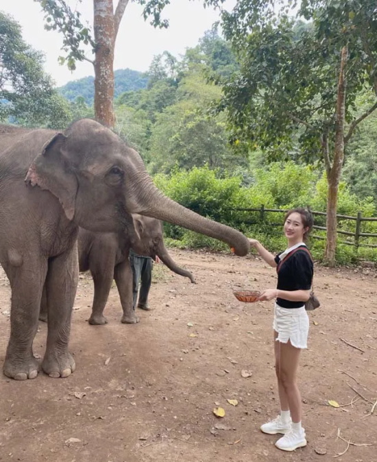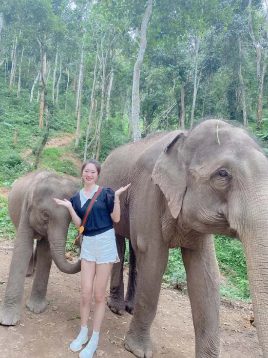 排坛第一美女晒照,与亚洲象近距离合影,打卡西双版纳野象谷