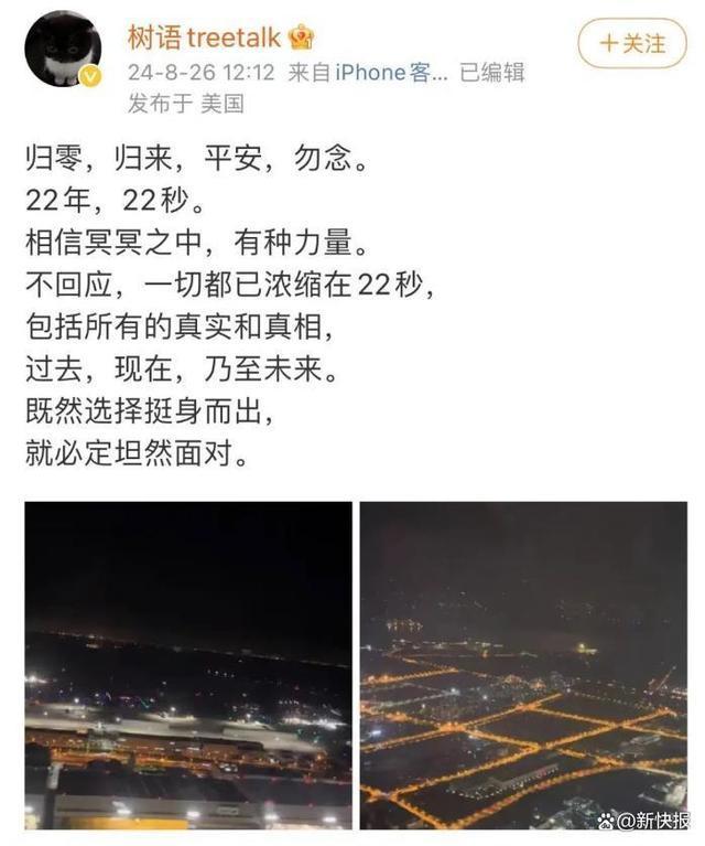 8 月 27 日,前 NHK 中国籍员工 " 树语 treetalk" 发博报平安,他表示 " 人在祖国 "。