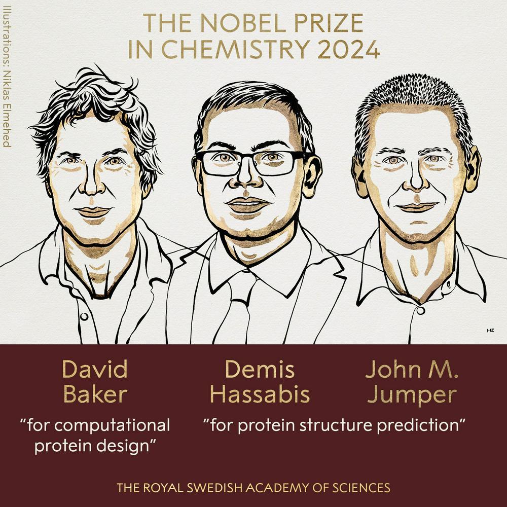 蓝鲸新闻 10 月 10 日讯(记者 朱俊熹)继 2024 年诺贝尔物理学奖之后,又一诺贝尔奖项花落人工智能。当地时间 10 月 9 日,瑞典皇家科学院宣布将 2024 年诺贝尔化学奖授予美国生物化学家 David Baker,以及谷歌 DeepMind 的联合创始人兼首席执行官 Demis Hassabis、总监 John Jumper,以表彰他们在蛋白质结构方面做出的重大突破。