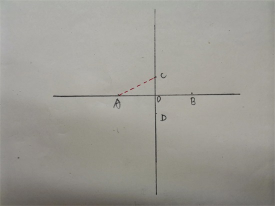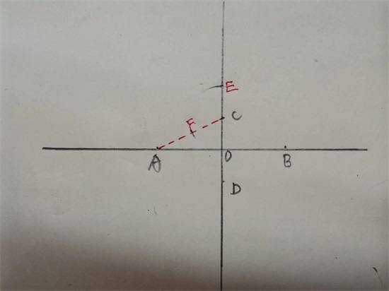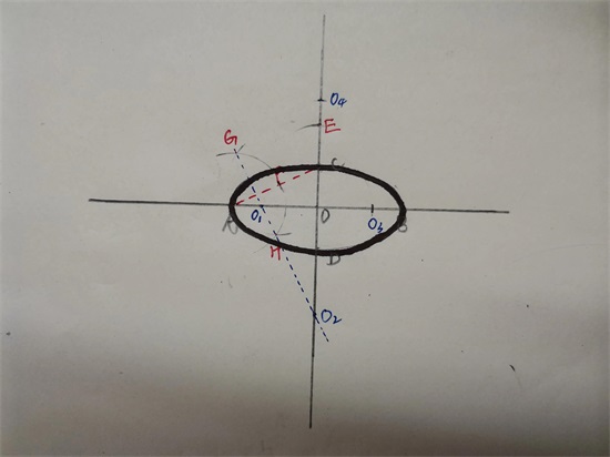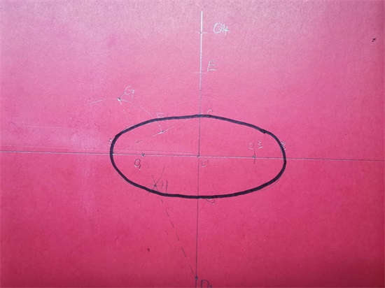 1、第一步做垂直相交的两条直线,在上面确定A、B、C、D、O五个点,AB为长轴,CD为短轴,O为中心点。