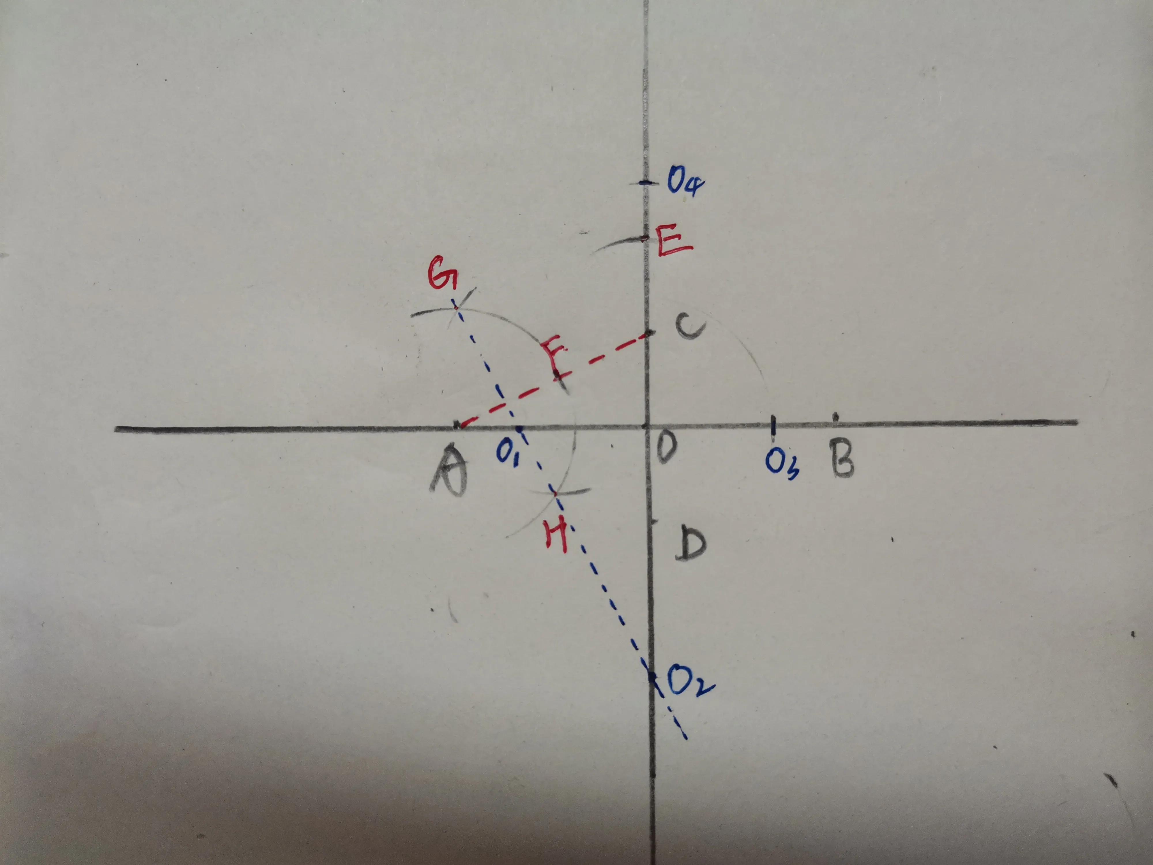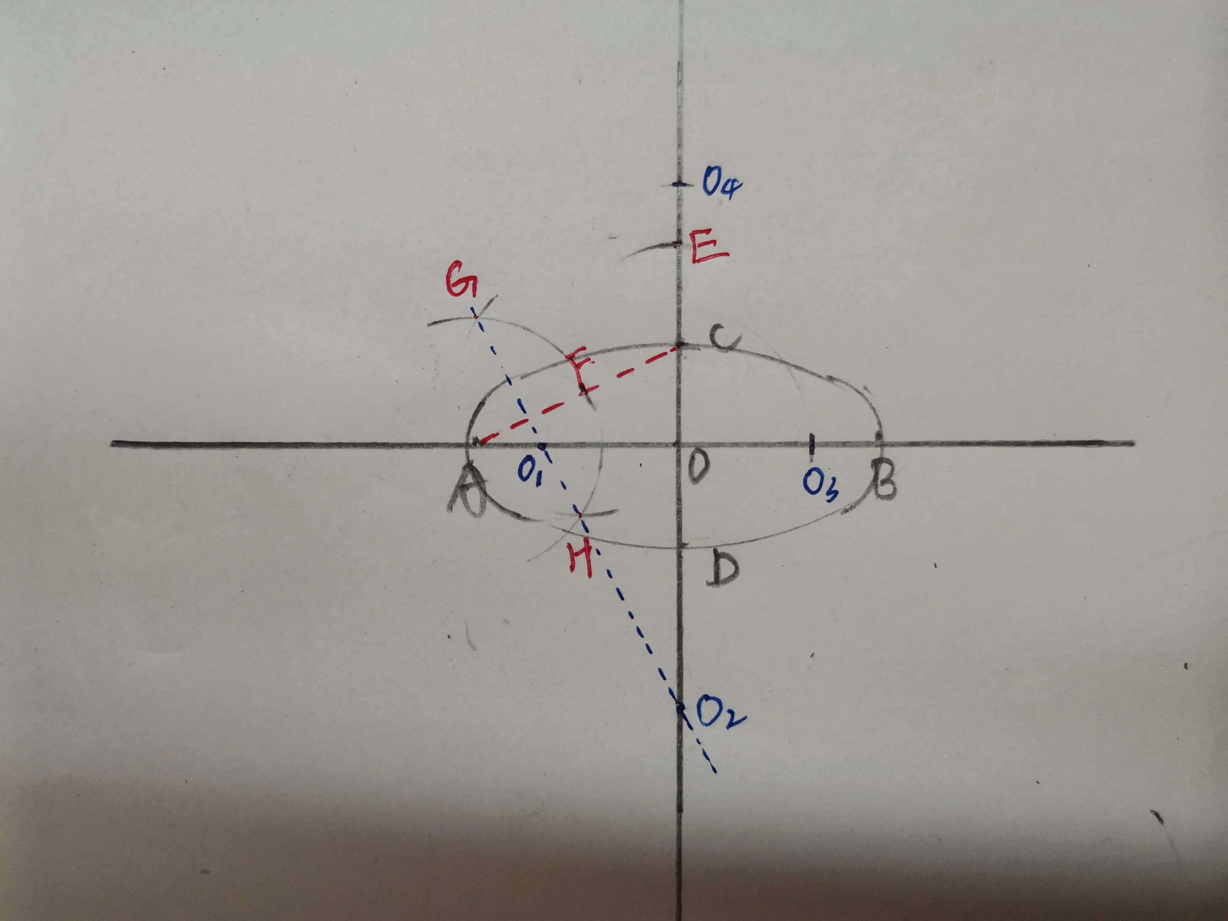 5、连接G、H,交AB于O1点,交CD于O2点。