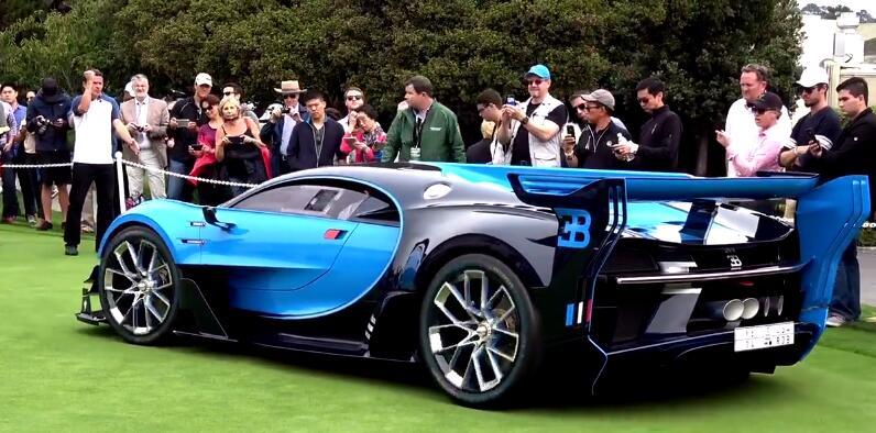 停到草坪上后,更彰显布加迪帅气,黑蓝配色,时尚感爆棚,此车也是世界上最强大,最快捷,最豪华,最高级的超级跑车
