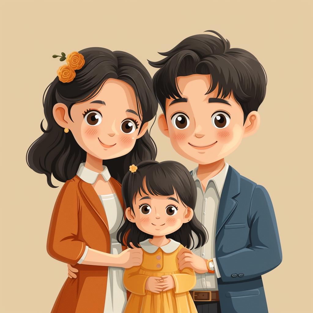 亲子头像 - 一家三口合影-温馨的一家人插画头像