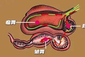 食道进入胃部后,首先会进入到瘤胃进行消化,这里是骆驼消化食物的主战场,拥有高达400亿种细菌和真菌等微生物,约50%的粗纤维在瘤胃内被这些微生物消化。经过瘤胃的消化后,食物进入网胃。网胃形似蜂巢,也称蜂巢胃,类似筛子,对消化物进行过滤。当遇有无法消化的食物,就会通过刺激瘤胃壁上的肌肉产生收缩反应,将食物重新返回到口腔进行咀嚼,也就是反刍。通过这两道程序后,剩余的一些还未完全消化的食物,就会到皱胃中,进一步消化。皱胃是骆驼体内唯一具有分泌功能的胃,通过分泌胃液对之前两个胃消化后产生的代谢物进行进一步的化学消化。所以即使再坚硬的仙人掌刺,也就转化成了营养被吸收了。所以地球的这场浩劫的胜利者是骆驼。