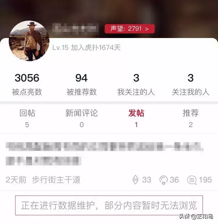 最近几天虎扑确实有些异常,包括[2018虎扑娱乐圈年度盛典]相关消息都无法正常浏览,与“虎扑”相关的帖子均莫名消失,其只在页面上留下一句:正在进行数据维护。