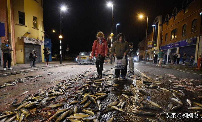 鱼雨过后,洪都拉斯人民在街上捡鱼