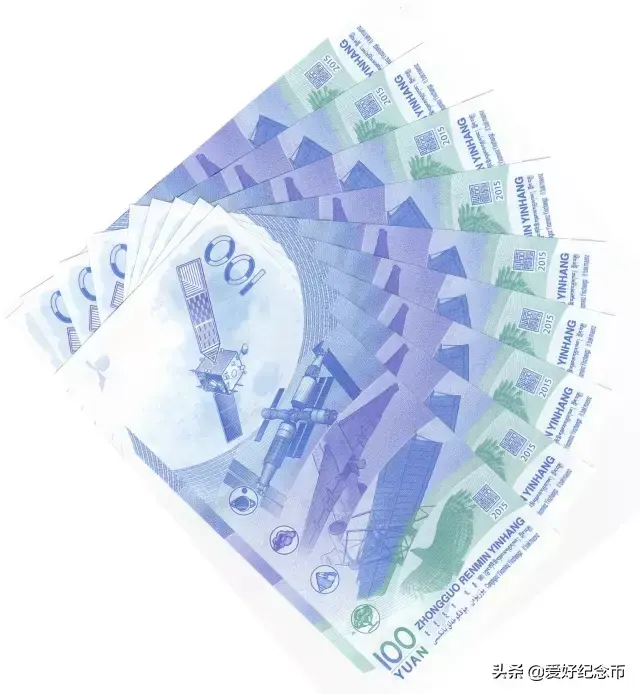 中国人民银行于2015年11月26日发行了中国航天普通纪念币一枚、中国航天纪念钞一张。其中,中国航天纪念钞主色调为蓝色,面额为100元,票面长为155毫米,票面宽为77毫米,发行数量为3亿张,与同面额人民币等值流通。