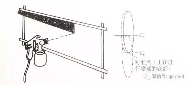 (7)走枪的基本动作。汽车修补涂装中,被涂物的情况不同,喷漆走枪的手法而不同,以下叙述几种常用的喷漆走枪手法。