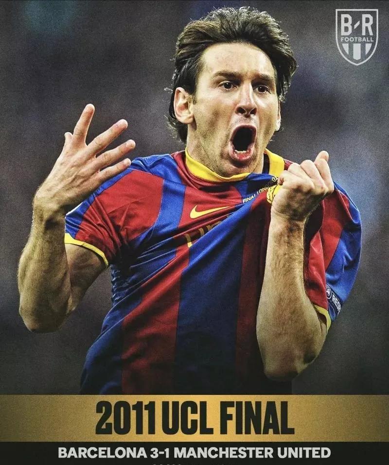 2011年5月28日,巴萨三年内第二次在欧冠决赛面对老对手曼联。巴萨梦三王朝的巅峰,史上最强的巴萨,难忘弗格森颤抖的手。梅西再一次用进球击败了对手,赢得了个人第三座欧冠奖杯。