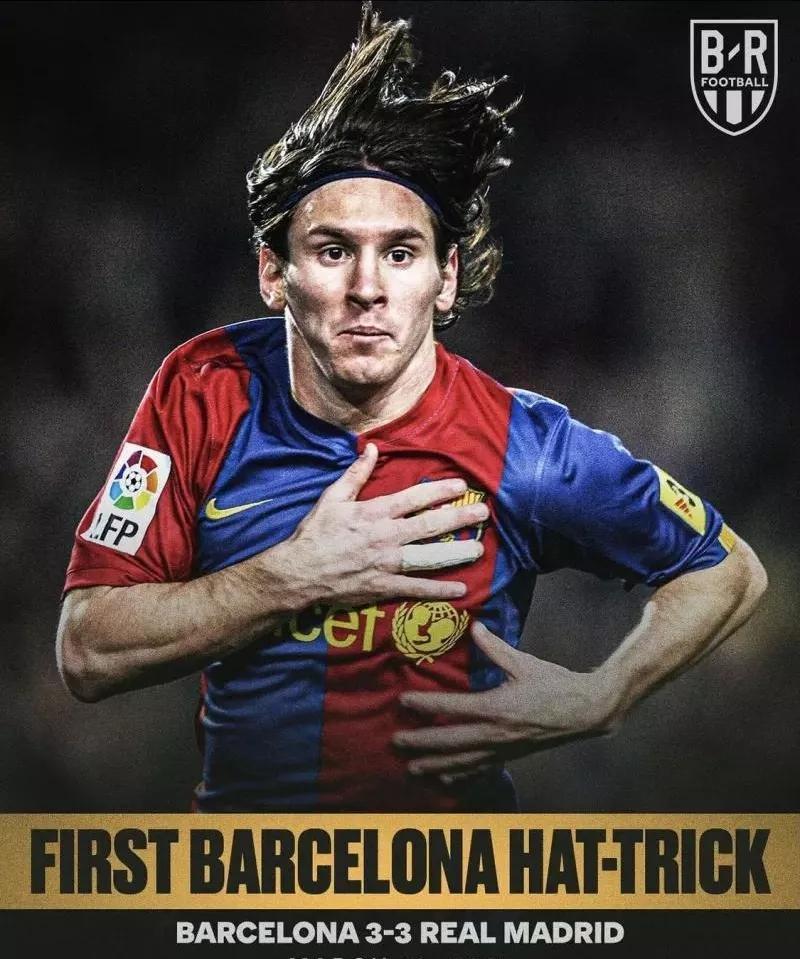 2007年3月10日,当赛季西甲第26轮,巴塞罗那在诺坎普球场迎战皇家马德里,这也是梅西的成名之战。19岁的梅西,在群星在场的情况下上演职业生涯首个帽子戏法,力挽狂澜挽救巴萨,3度扳平比分,最终帮助巴萨皇马收获一场平局,震惊世界。