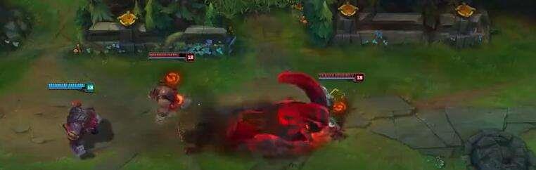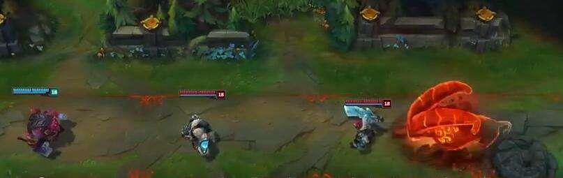 【E】奥恩变得不可阻挡,他为自己套上护盾并喷射火焰。这些火焰会造成目标当前生命值一部分魔法伤害。受到最后一团火焰影响的敌人会变得脆弱。奥恩的普通攻击会击退脆弱的敌人。