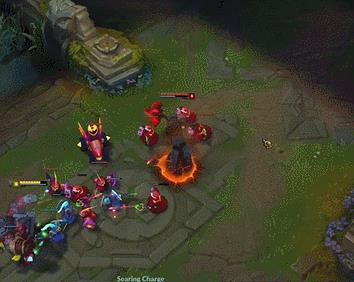 【R】奥恩在目标地点召唤一个巨大的火元素。然后火元素会加速向奥恩移动。被火元素碾压的敌人会受到魔法伤害并变得“脆弱”。