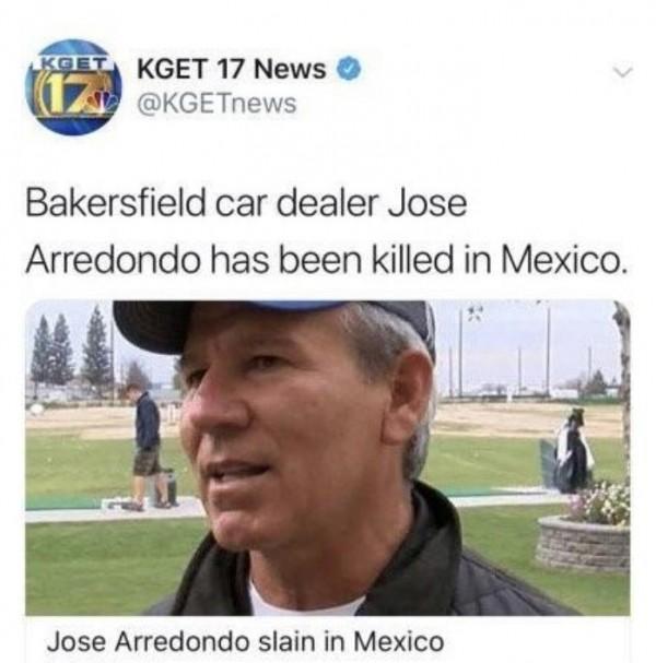 7月18日(当地时间),美国汽车经销商何塞.阿雷东多(Jose Arredondo)于墨西哥遇害身亡。阿雷东多被发现遇害身亡于位于墨西哥的度假别墅中,背上多处刺伤,警方判定为他杀,正在搜查嫌疑人。据悉,何塞.阿雷东多正是韩国歌手金Samuel的父亲。
