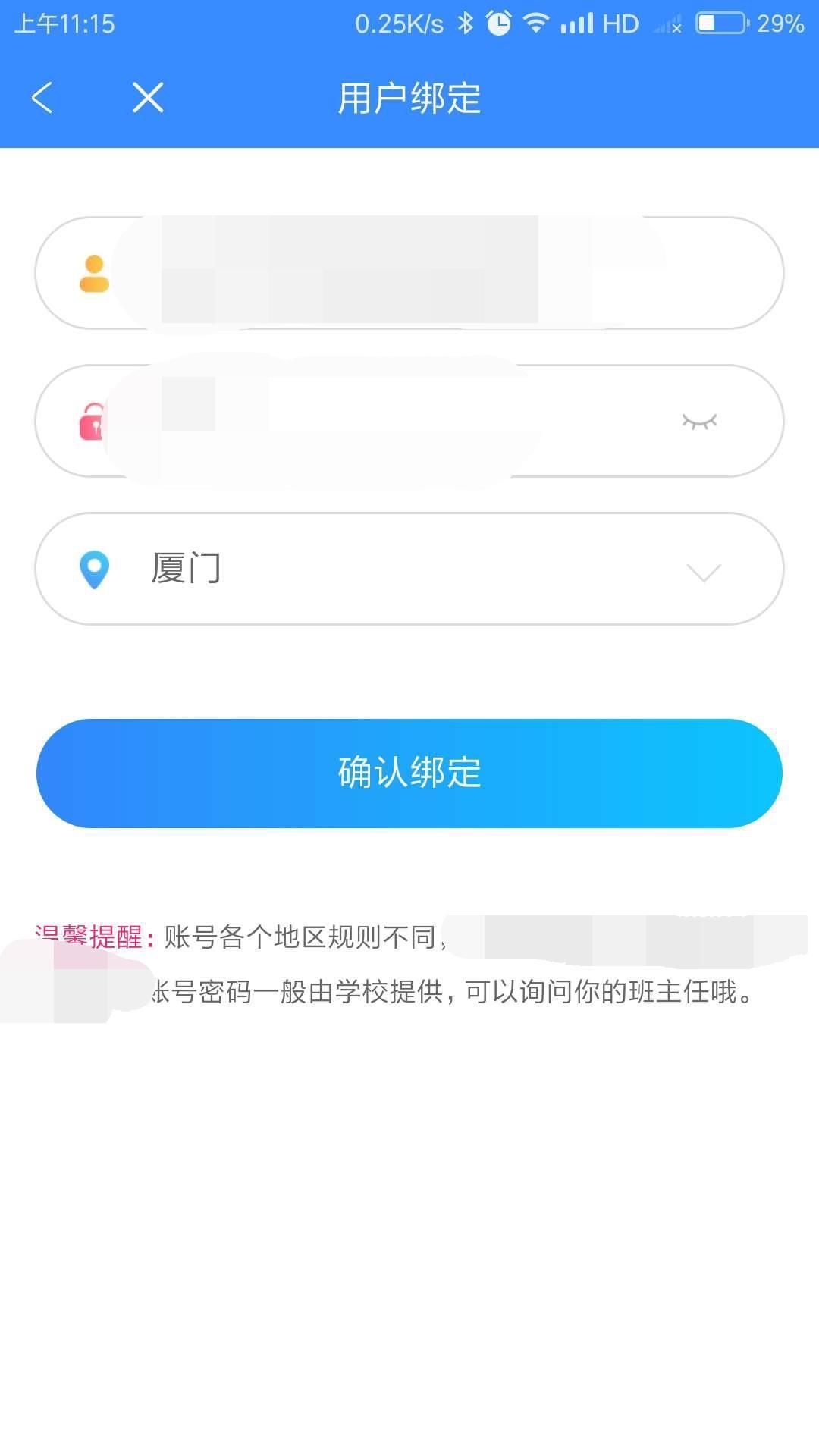 方法一:在【我的】-【绑定学校账号】页面进行账号绑定;