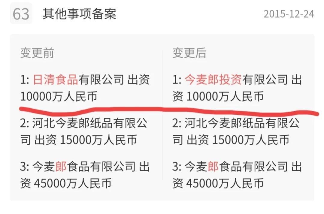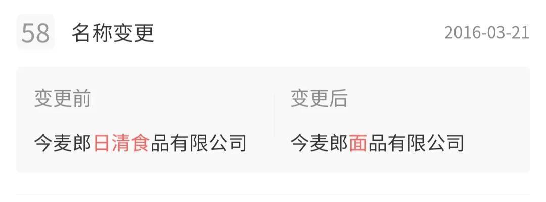 因为曾经,今麦郎食品股份有限公司的名称并不是现在这个,在2016年3月21日之前,它的名称是“今麦郎日清食品有限公司”。看到这里你应该明白它为什么叫做“今麦郎”了。而且2015年12月24日之前“日清食品有限公司”在今麦郎的股东中排名靠前,2015年12月24日这家公司完全退出今麦郎食品股份有限公司。那么问题又来了,日清食品有限公司又是何来头?