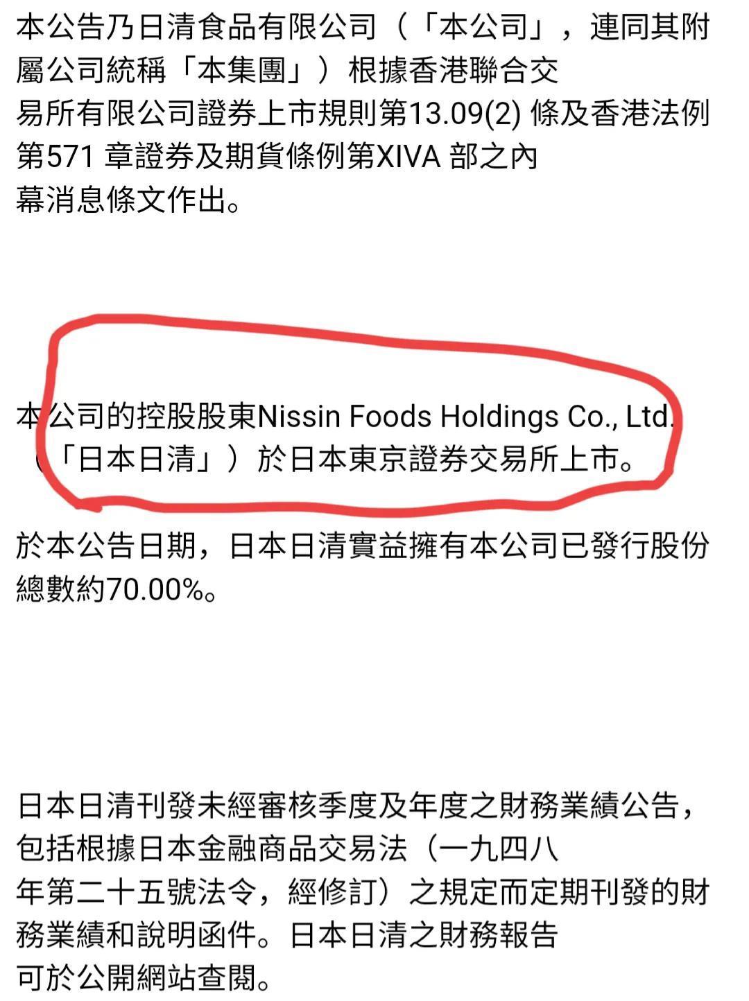 从下面这个报告中可以看出,Nissin Foods Holdings Co.,Ltd是在日本上市的一家公司,其背后就是日资。