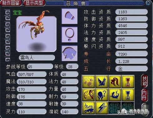 一只双特殊技能雷鸟人,坐拥“护盾+净台”,生存能力极强。如果能打书成功,将是精锐的顶级血宠。