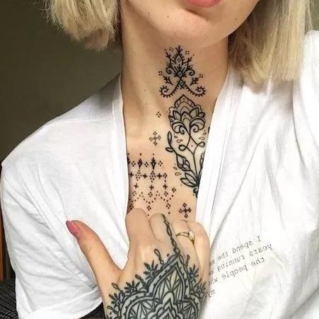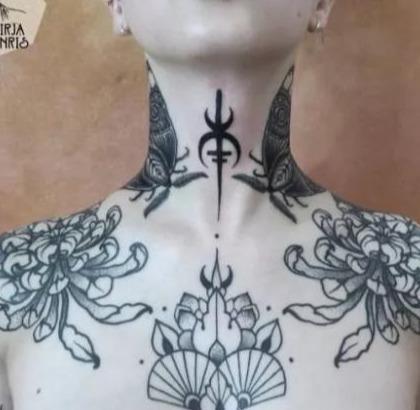 今天发的大多是前颈部的纹身,后面我还会整理一些侧面后面,链接花胸的纹身图案发给大家。