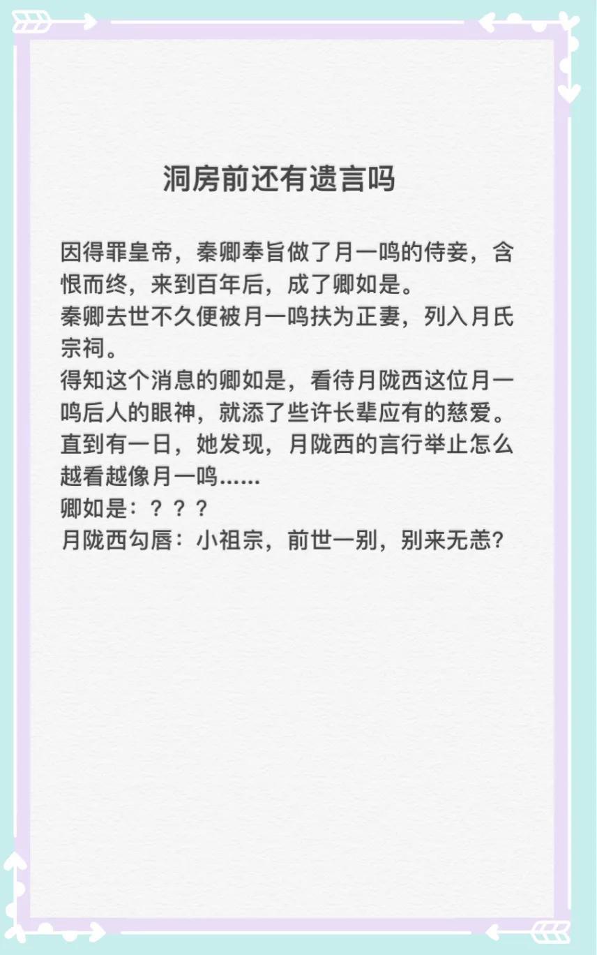 男女主双重生。男主前世是少年宰相,16岁廊桥一遇开始暗恋女主秦卿,后来秦卿被迫嫁给男主为妾,一直都对男主无感。重生后,男女主变换身份,男主认出女主后,开始追妻之路。女主太钢铁直女,男主撩人撩得心塞,男主的感情真的坚韧的从来都没负情绪,女主动心后也直率很多。两个人都是大醋缸。超级甜,全程姨母笑,结局圆满,强烈推荐!