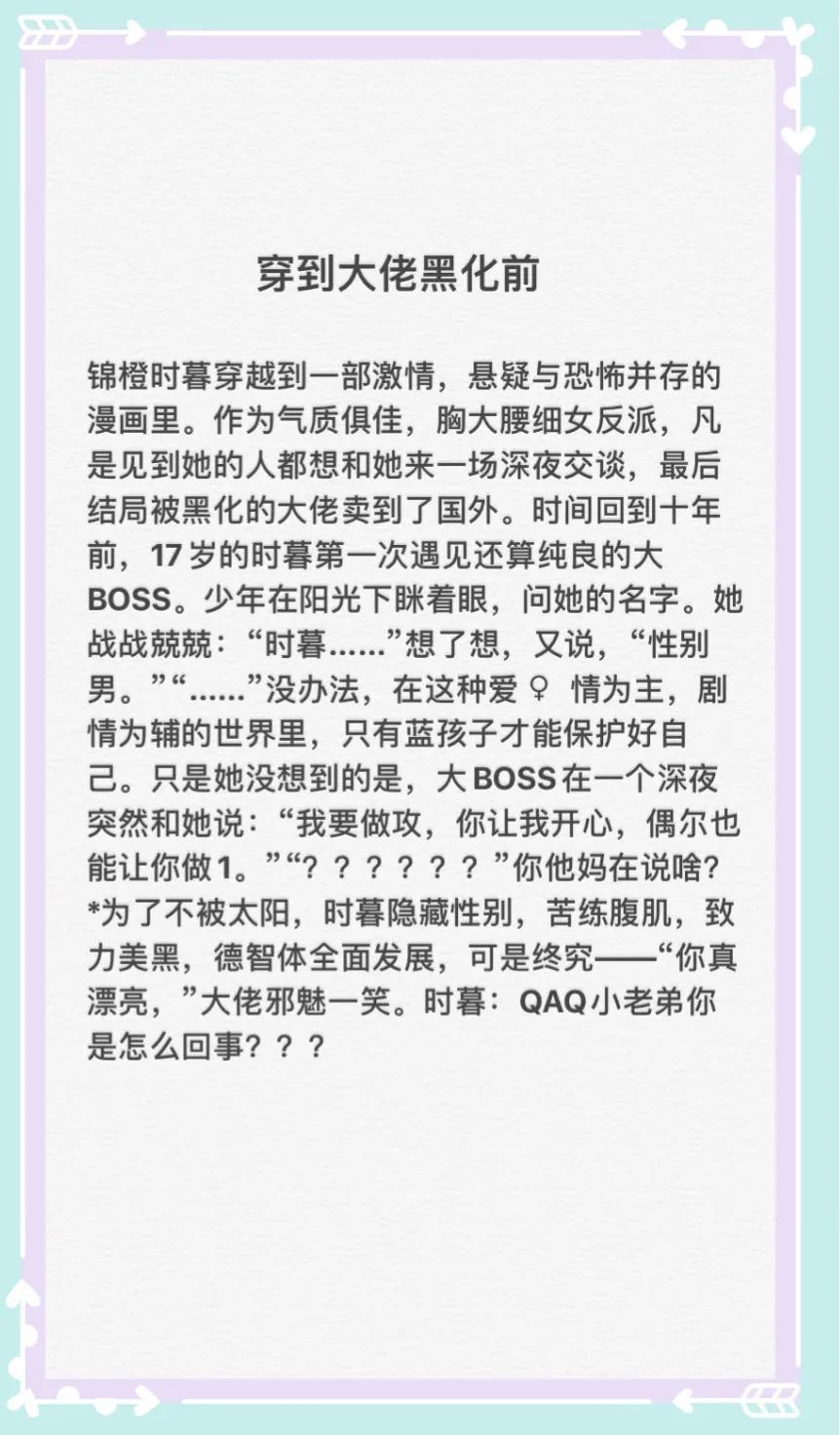 女扮男装是老梗了,但是这个女主NO.1。全文都很欢乐,我的语言太苍白了说不出到底有多好笑,光环和bug有,但是对我来说没有引起不适文荒的可以去看看沙雕文,推荐!