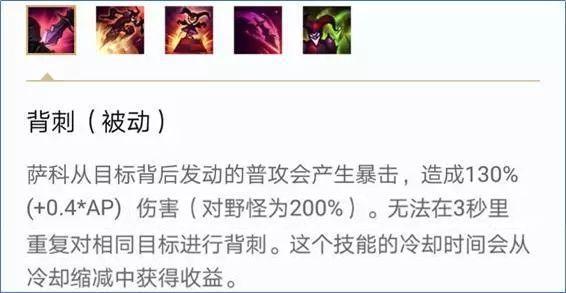 背刺这一技能是前期萨科刷野速度快的主要原因之一,想完好萨科就要善于利用被动的CD衔接背刺暴击来清野。背刺的触发条件也并不难1甚至于侧面都可以处发背刺,所以高端萨科玩家都会扭得十分骚气,在小走位的同时更是能躲掉成吨的技能伤害。(小提示:萨科分身和真身的背刺CD是分开计算的)