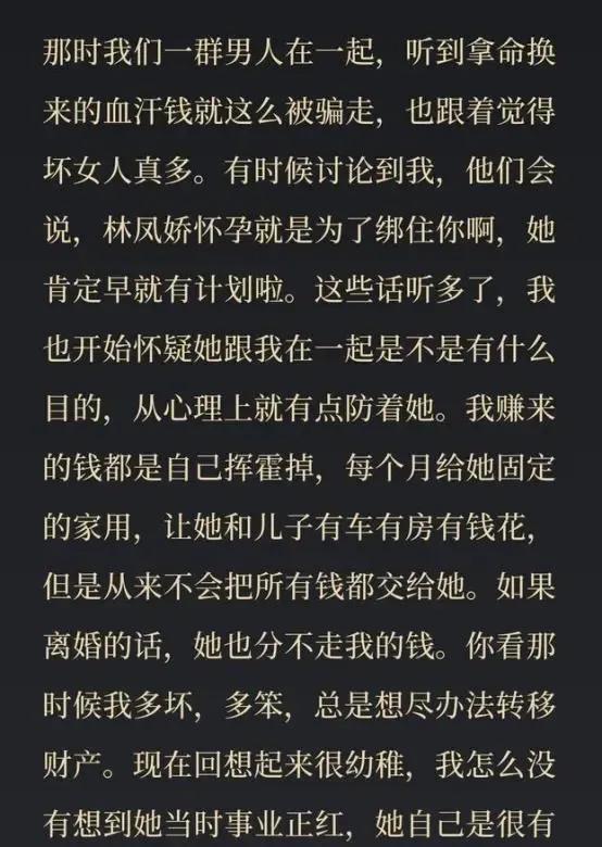 但是赚的钱不会全部交给林凤娇。因为他怕离婚,对方分得他的财产。
