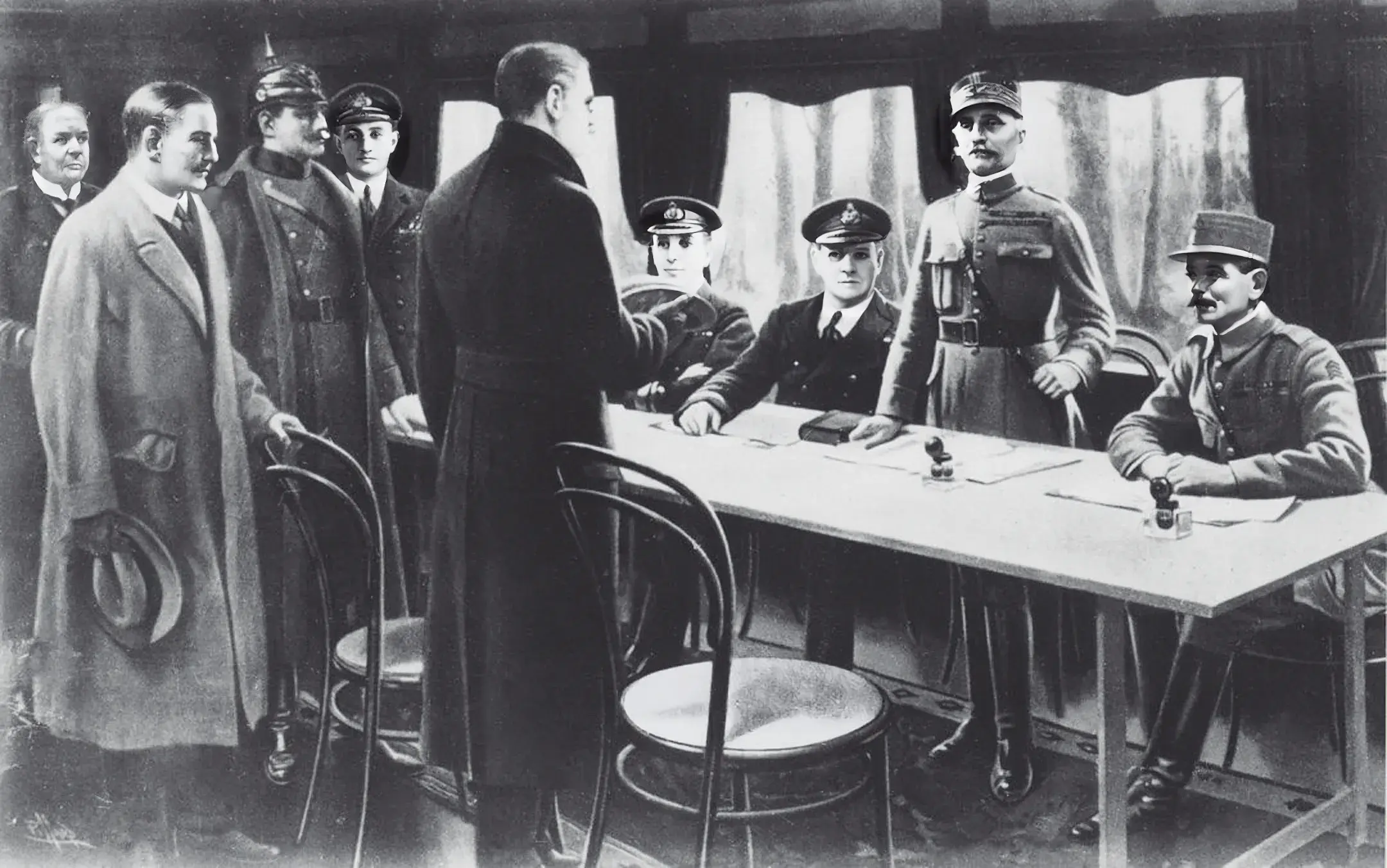 11月11日,德国派出埃尔茨贝格尔率领的代表团,与协约国联军总司令福煦,在法国巴黎北部的一节火车车厢中签署了康边停战协定,该协定标志着德国宣布无条件投降,第一次世界大战以同盟国的失败协约国的胜利而结束,我是爱历史的胡小新,喜欢的给个关注。