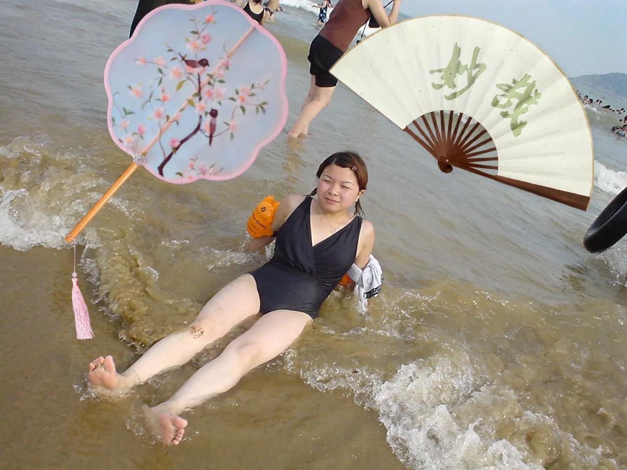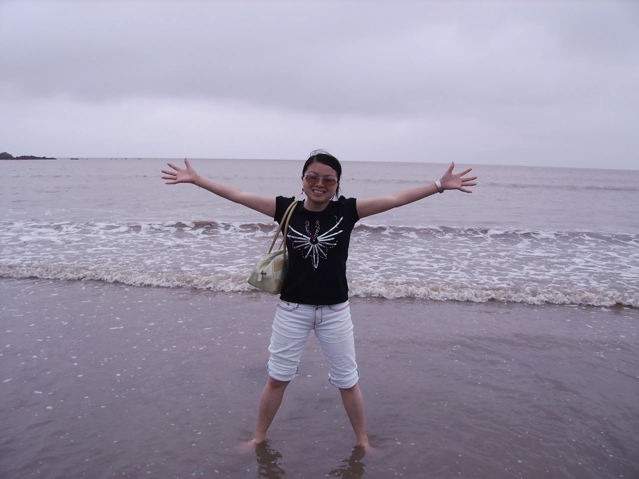 这张照片是2002年在朱家尖十里金沙拍的,应该就是现在的南沙海滨浴场。因为这次来的时候不是夏天,所以没有计划下海游泳,如果夏天来,建议住一晚在南沙景区。
