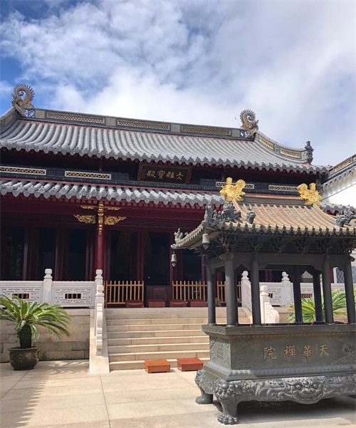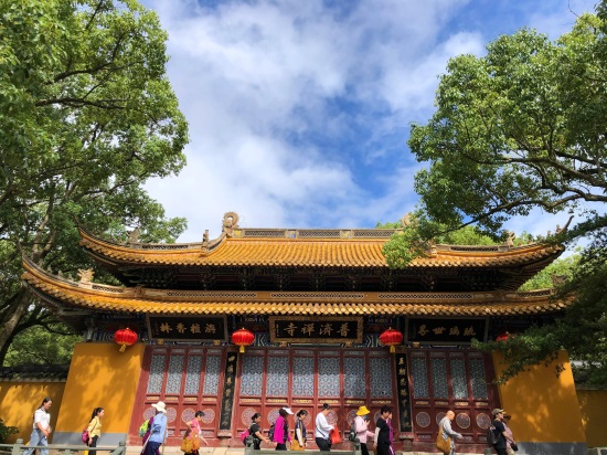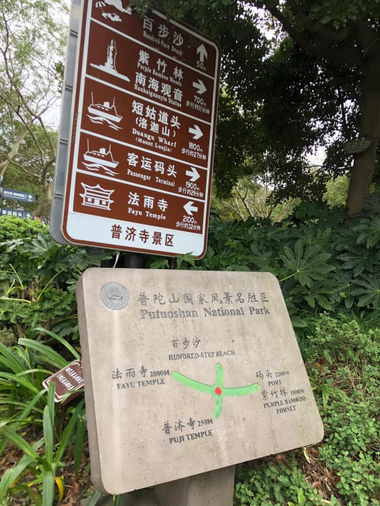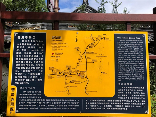 游船到达普陀山岛后,可以先坐中巴去普济寺,然后去百步沙、紫竹林、观音像(这几个地方可以步行一路游玩过去,也可以坐中巴车)。