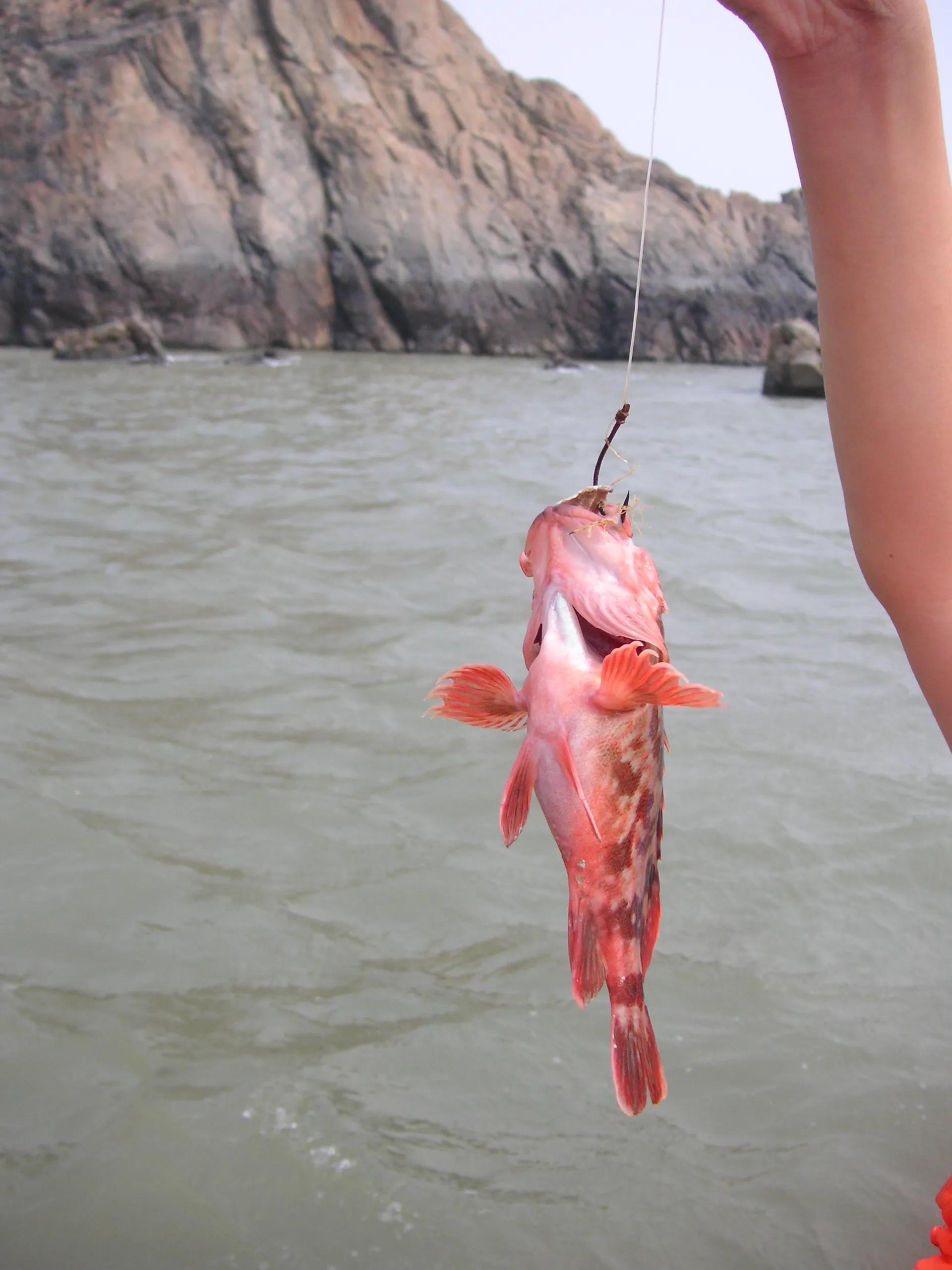 下图是2009年,是用绳子和鱼钩钓到的鱼,没有鱼杆。