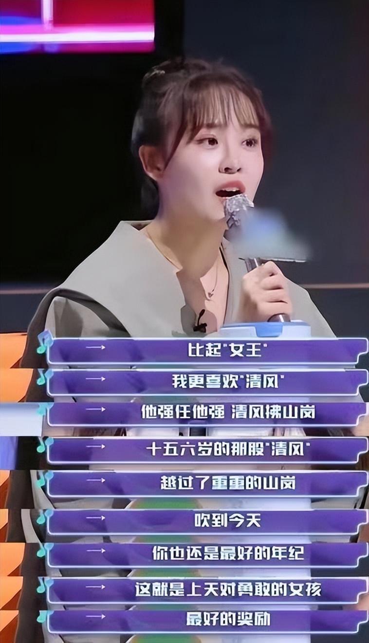 当张含韵在节目中因为唱功被围攻时,房琪娓娓道来:他强任他强,清风拂山岗。