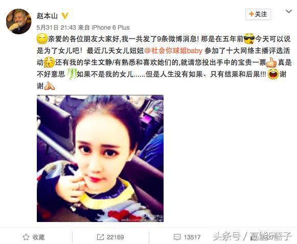 2016年6月2日,赵本山时隔5年更博,就是为了给女儿拉票。